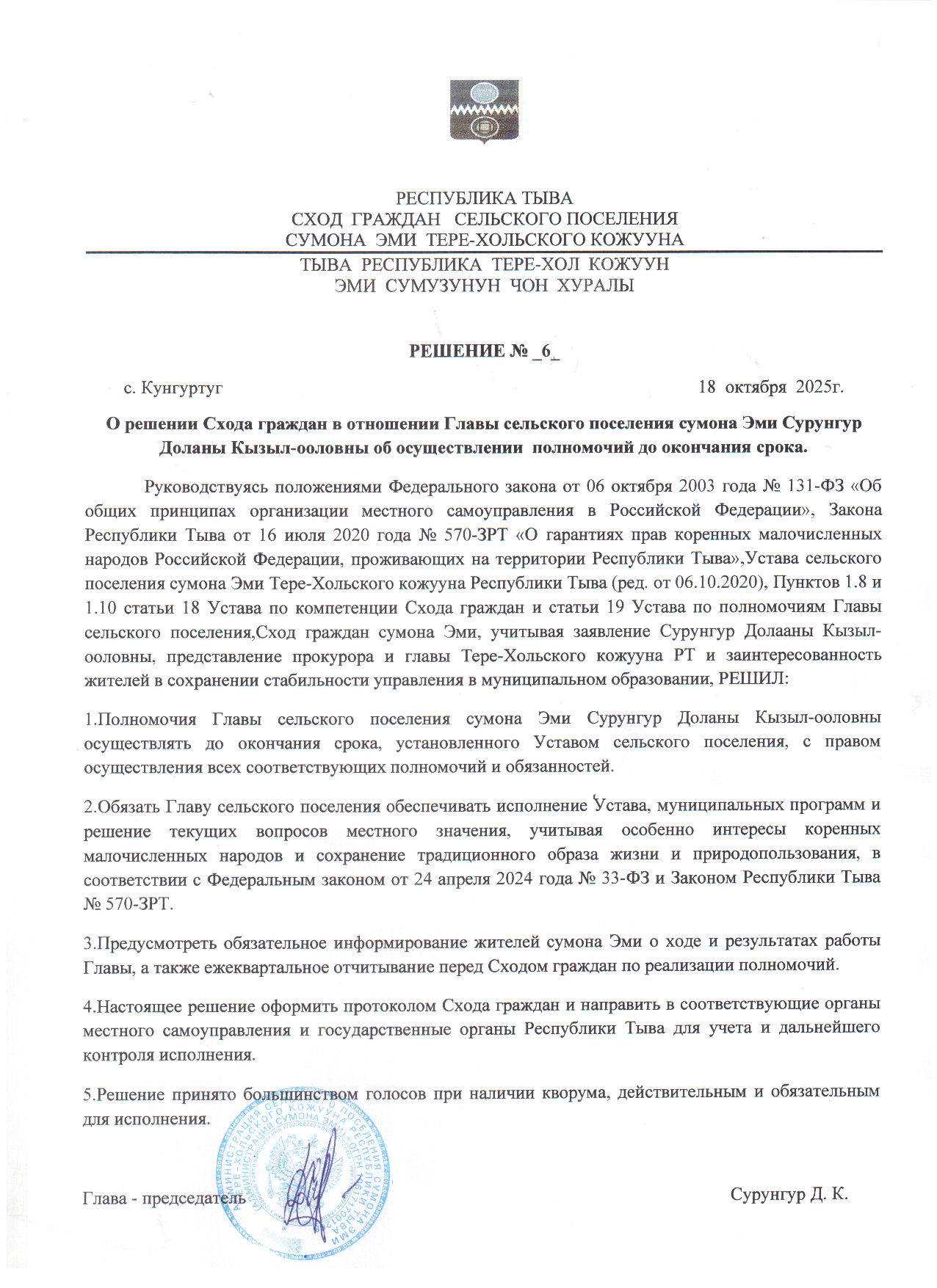 О решении Схода граждан в отношении Главы сельского поселения сумона Эми Сурунугур Доланы Кызыл-ооловны об осуществлении полномочий до окончания срока. Скан_20251020, PNG , 1262 KB