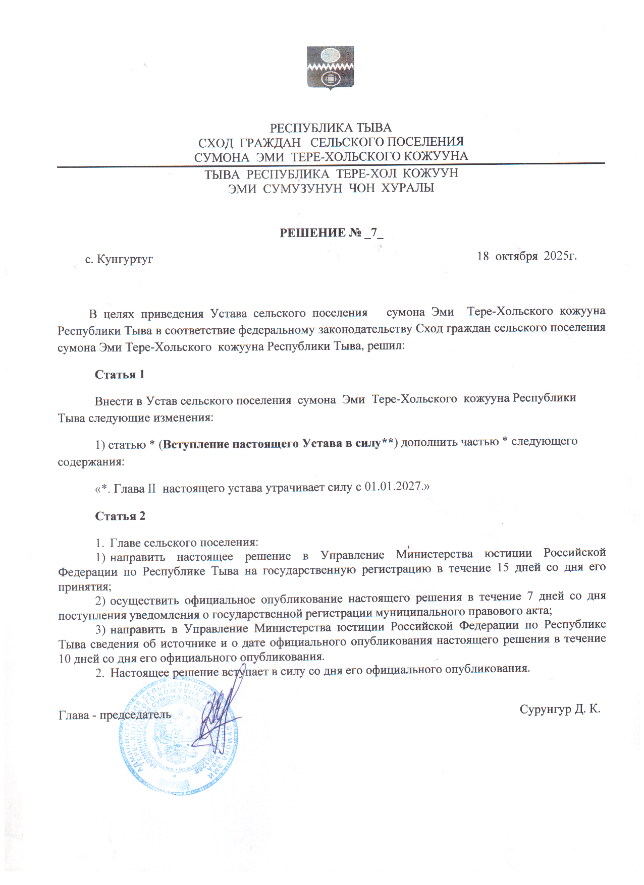 Решение №7 от 18.10.2025 г. с.Кунгуртуг